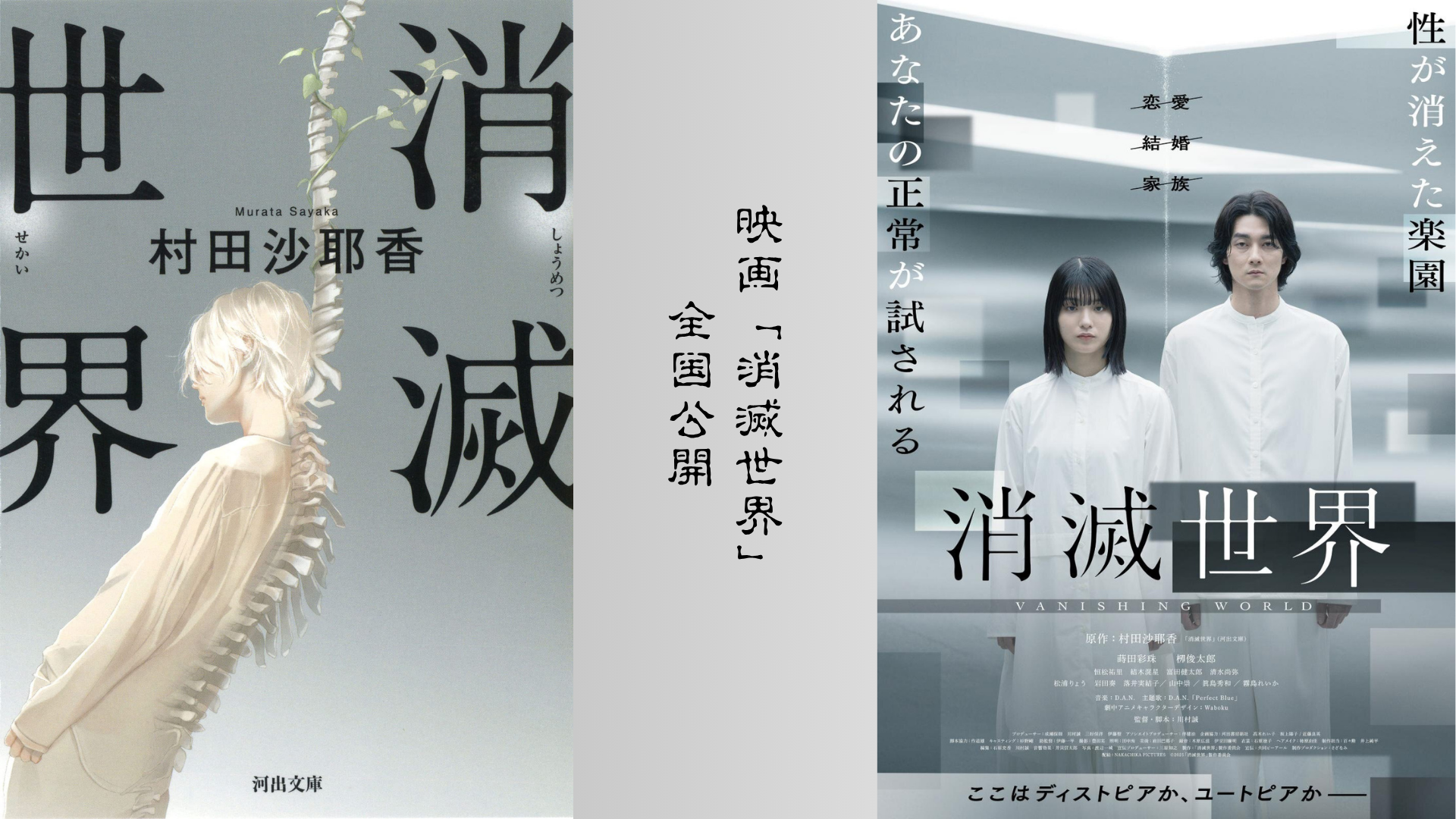 映画「消滅世界」(主演:蒔田彩珠/栁俊太郎)2025年11月28日公開 遂に映画の上映公開日が決定!芥川賞受賞作家 村田沙耶香氏の初実写作品であり、川村誠監督の初監督作品でもある映画「消滅世界」の上映公開日が、11月28日に決定。併せてティザービジュア... -
