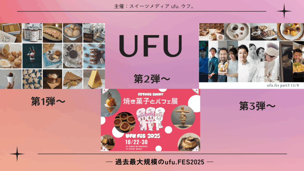 ufu.fes2025(主催:スイーツメディア ufu. ウフ。/編集長:クリーム太朗) スイーツの祭典として盛り上がる最大規模のufu.fes2025今年で第4回目を迎える「スイーツメディア ufu. ウフ。」主催のufu.FESですが、なんと今年は3回の会期に分けて、それぞれ異... -