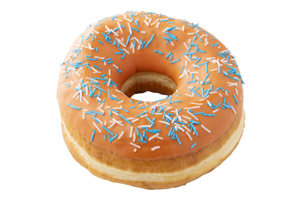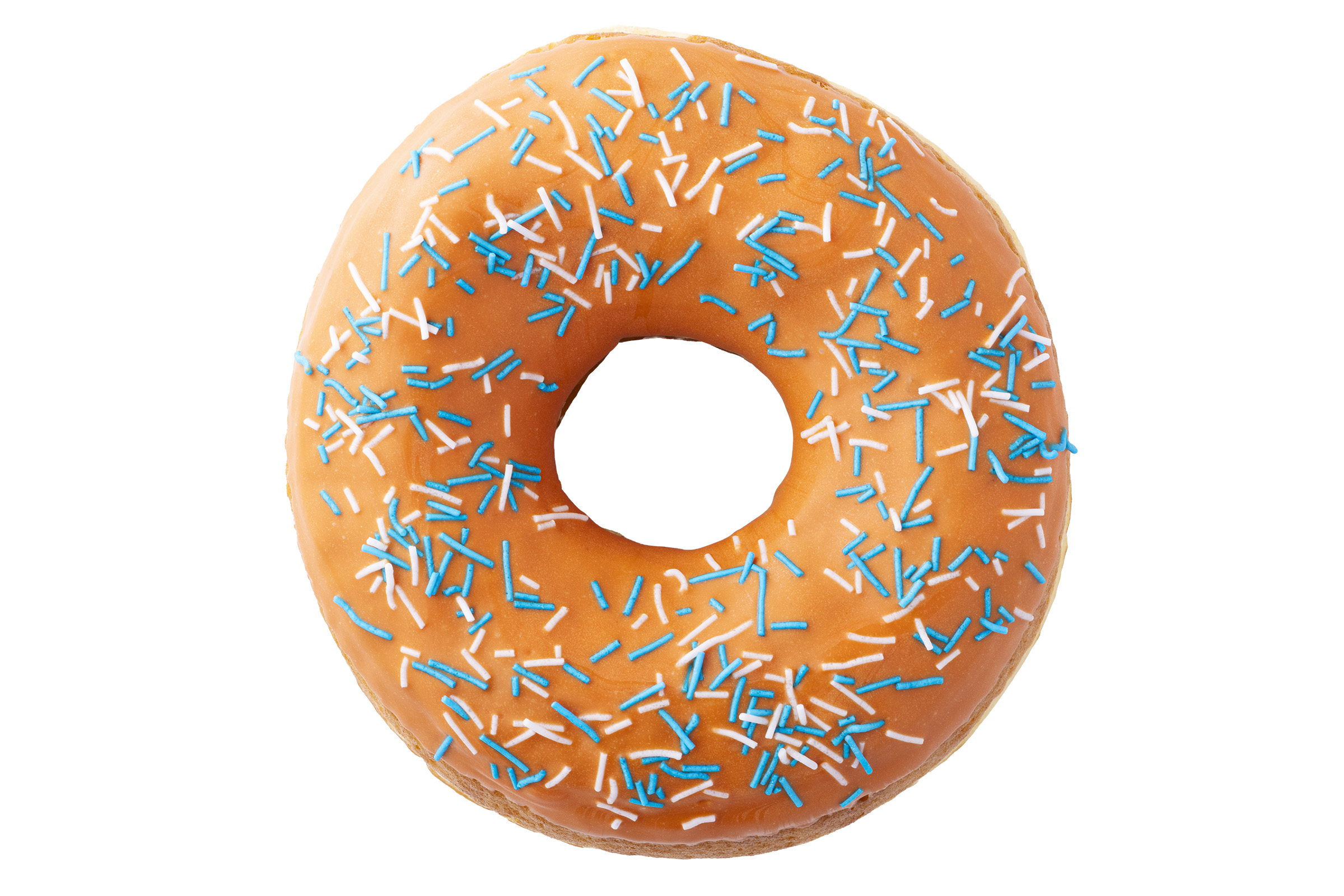 「ランディーズドーナツ」商品の中でも最大サイズ(直径約1.5 倍)の「テキサス(TEXAS)」ドーナツです。爽やかなオレンジチョコをコーティングし、さらにブルーとホワイトのスプリンクルを散りばめました。見た目も味わいも楽しめる一品です。