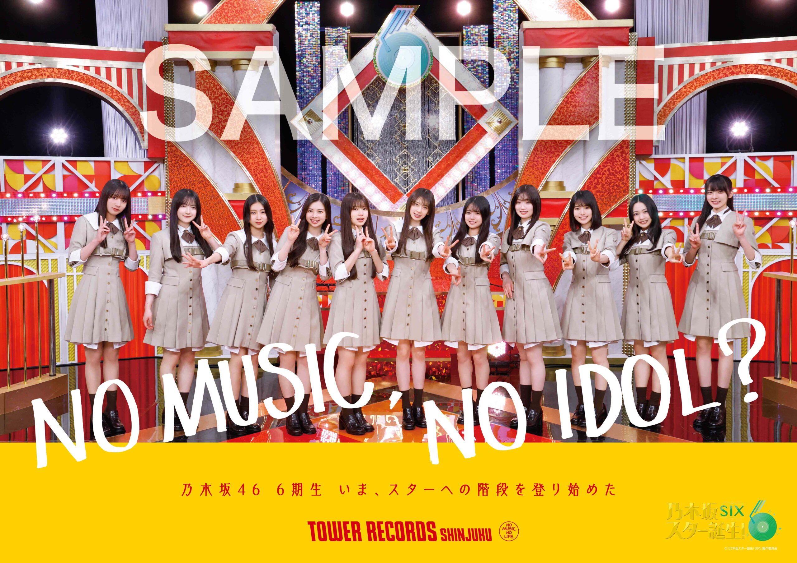 タワーレコードでは、新宿店を中心に実施するアイドル企画「NO MUSIC, NO IDOL?」VOL.330乃木坂46 の6 期生が初登場。『乃木坂スター誕生!SIX 第1 巻 Blu-ray BOX』購入者にはコラボポスターを特典として差し上げます。