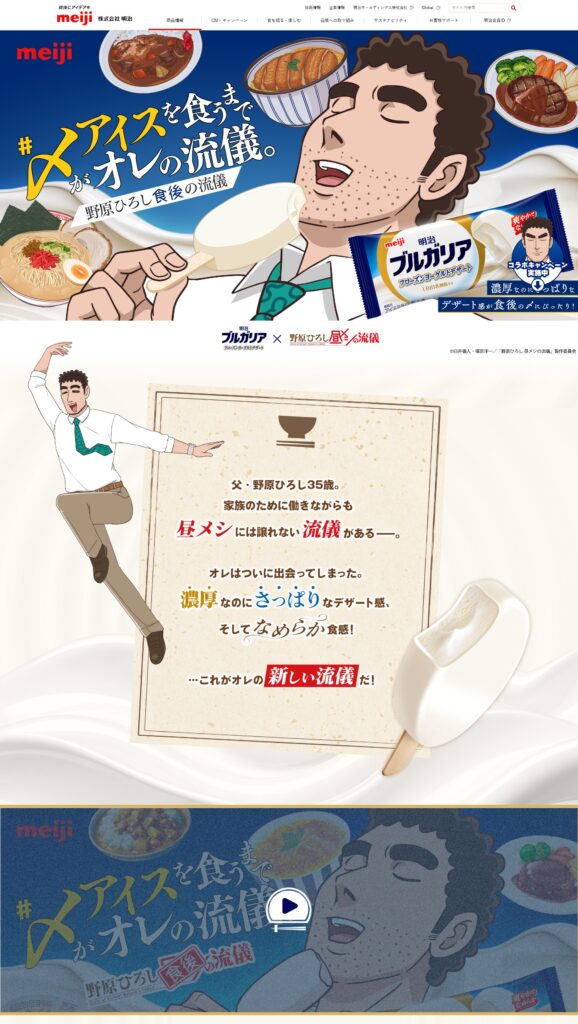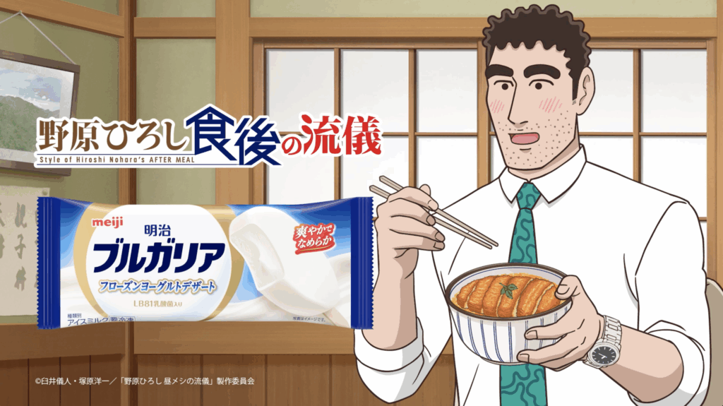 「明治ブルガリア フローズンヨーグルトデザート」は、忙しいサラリーマンでも手軽に購入でき、ひろしの食後の流儀である〆アイスを楽しめる一品です。