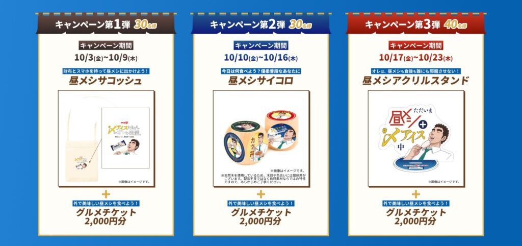 3回に分けて開催し、各回で昼メシを制するための必須アイテムをプレゼントします。