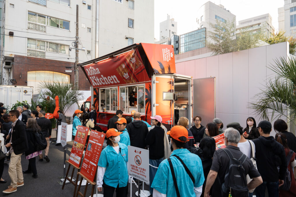 オープン前から入場待機列ができ、入場開始後には一時入場規制を設けるなど、初日から注目を集め大盛況のスタートとなった本POP UP。初日は、延べ1,500人以上が来場するなど、多くの方に看板商品のスウィートロール、スライダーの美味しさをとくと味わっていただき、オレンジ色に包まれた会場でハワイの空気感を存分にご体感いただきました。